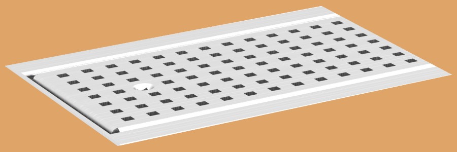 Quadrat: Der Edelstahlrost im klassischen Design für die Rinne mit einer Breite von 100 mm (Rost) in Belastungsklasse K3 (bis 300 KG). Die passenden Geruchsverschlüsse finden Sie mit dem Link zur Detailseite Abläufe für Rinnen.